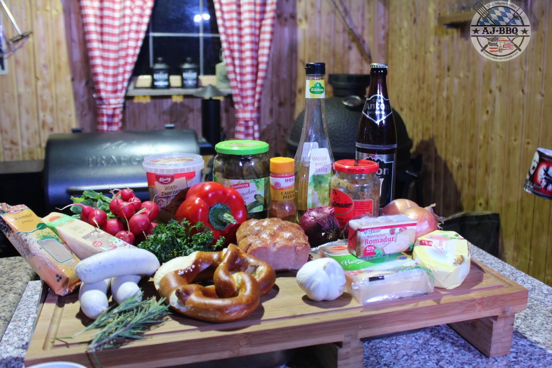 Nach ein paar Minuten ist dann auch schon alles fertig und kann zusammen mit einigen Essiggurkenscheiben und ein paar Röstzwiebeln auf einem Brett oder Teller schön drapiert serviert werden. Ich sag euch, dass war ein bayerischer Traum vom Grill! Viel Spaß beim nachgrillen und genießen,