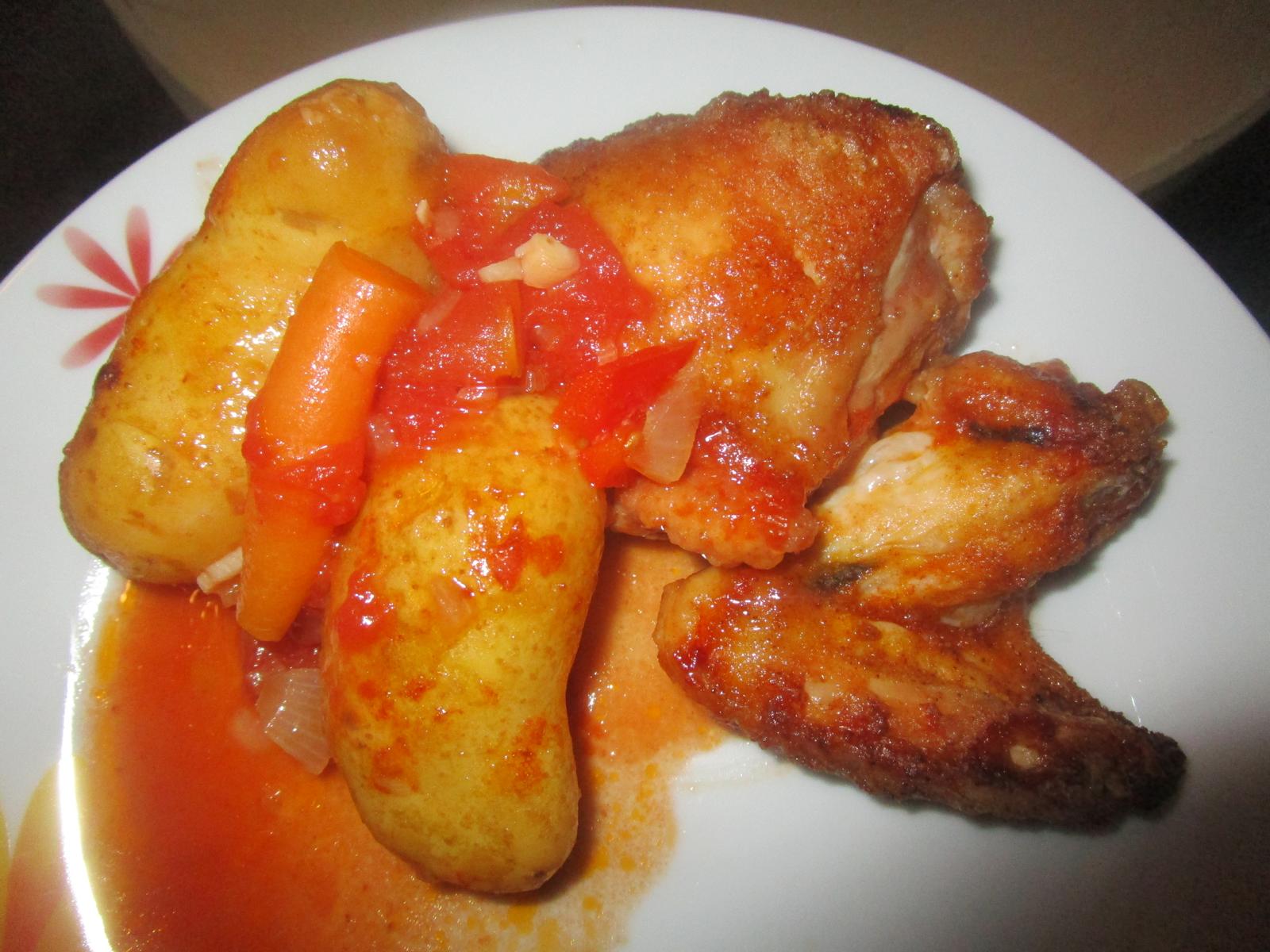 - Wenn das getan ist, gibt man die Kartoffeln in die Pfanne und bedeckt alles mit den Hühnchenteilen. Man muss nur wirklich kleine Kartoffeln nehmen, sonst werden sie in der Grillzeit nicht durch und bleiben somit im Kern hart.
