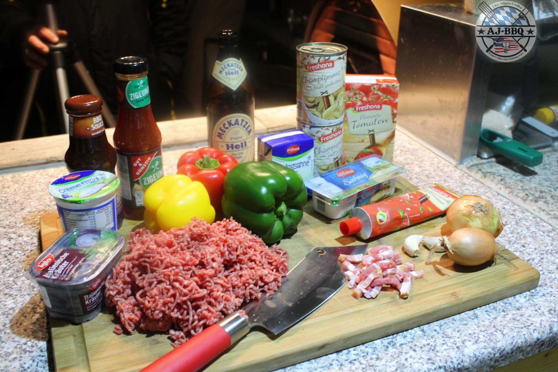 - Zuerst gebe ich das Hackfleisch in den Dutch Oven und brate es krümelig an. Ist dies geschehen, gebe ich die Zwiebeln und den Knoblauch dazu. Gleichzeitig wird nun alles gesalzen und gepfeffert. Das macht man am besten nach seinem eigenen Geschmack. Der eine mag es etwas salziger, der andere etwas schärfer.