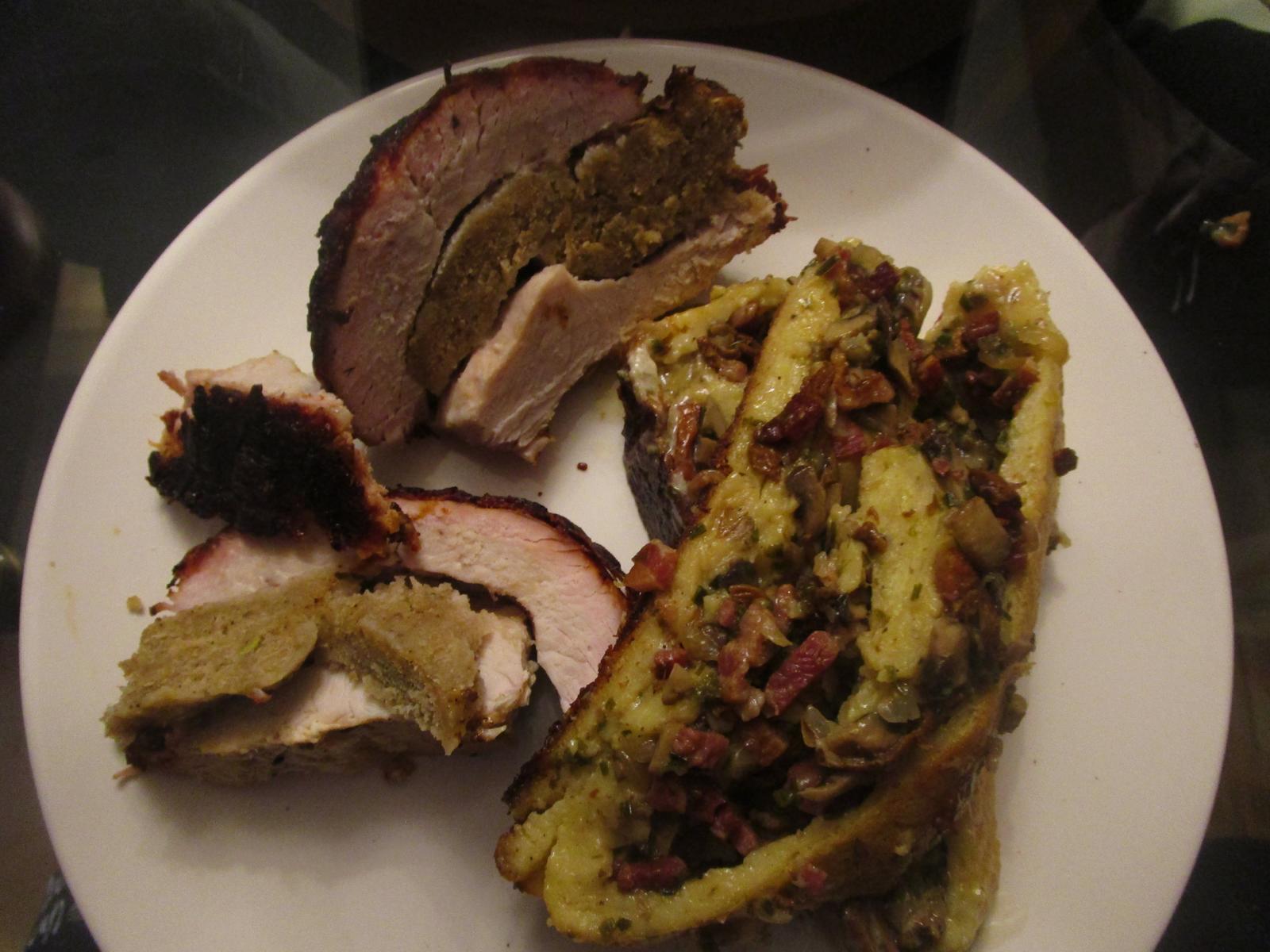 - Mit den restlichen Kohlen wird dann der Kugelgrill auf ca. 230°C eingeregelt. Dort nimmt die Putenbrust für ca. ebenfalls 60 Minuten in der indirekten Zone platz. Diese Putenbrust muss öfter mal gewendet werden, damit sie gleichmäßig durchgegart wird.