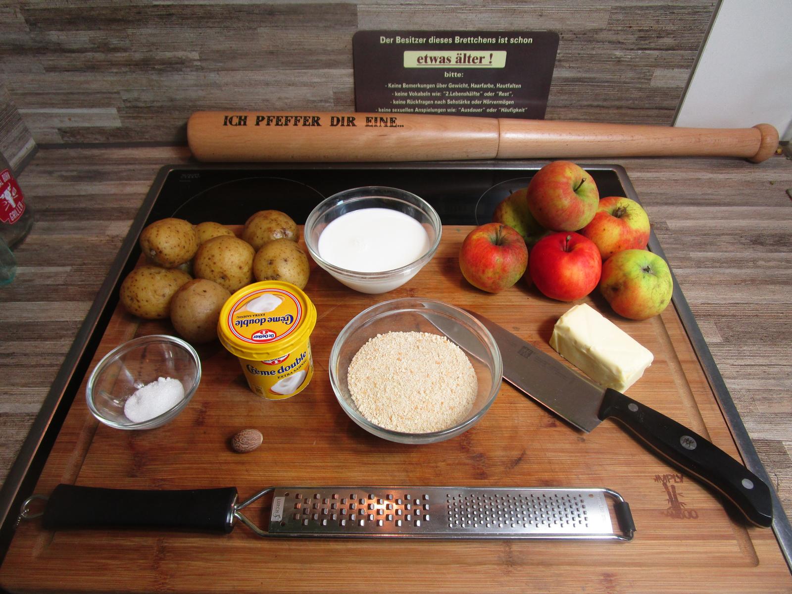 Zutaten für den Kartoffel-Apfel-Auflauf: