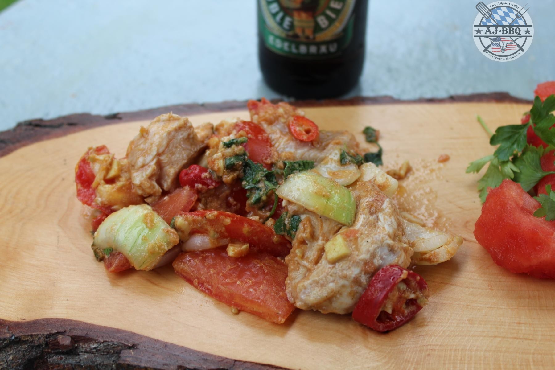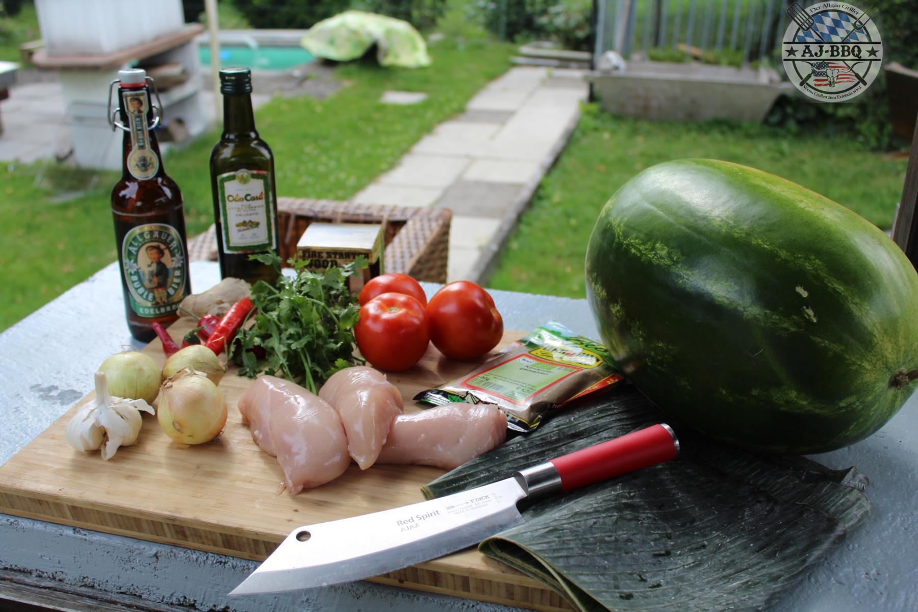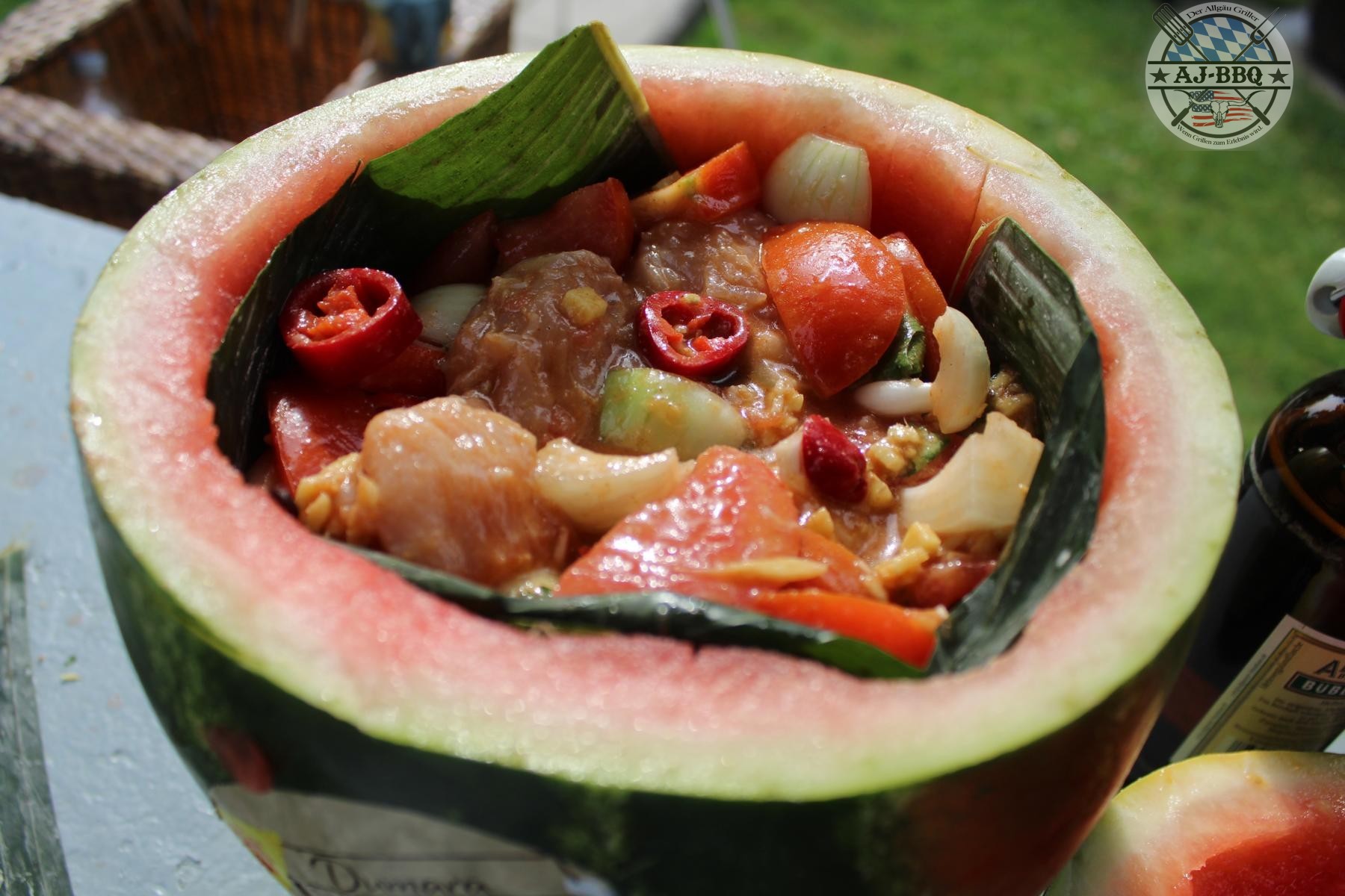 Hähnchencurry in der Wassermelone gegart