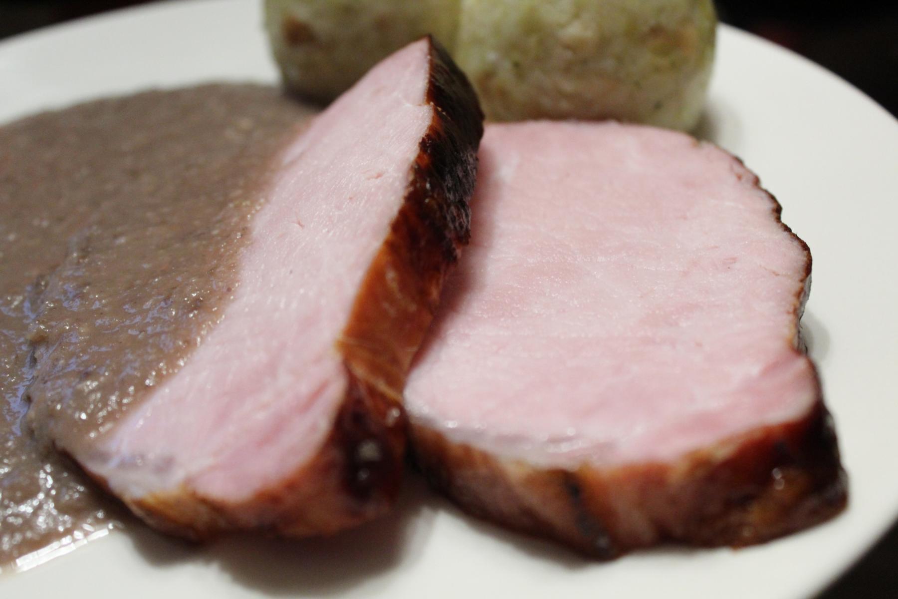 - Nach Ablauf der Stunde ist dann unser Kassler fertig. Bei einem Kassler reichen Kerntemperaturen um die 62°C, da es schon gepökelt und geräuchert ist.
