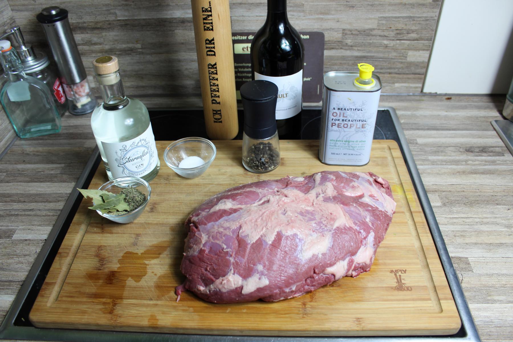 - 1 ausgebeinte Wildschweinkeule (ca. 2 – 2,5 kg)