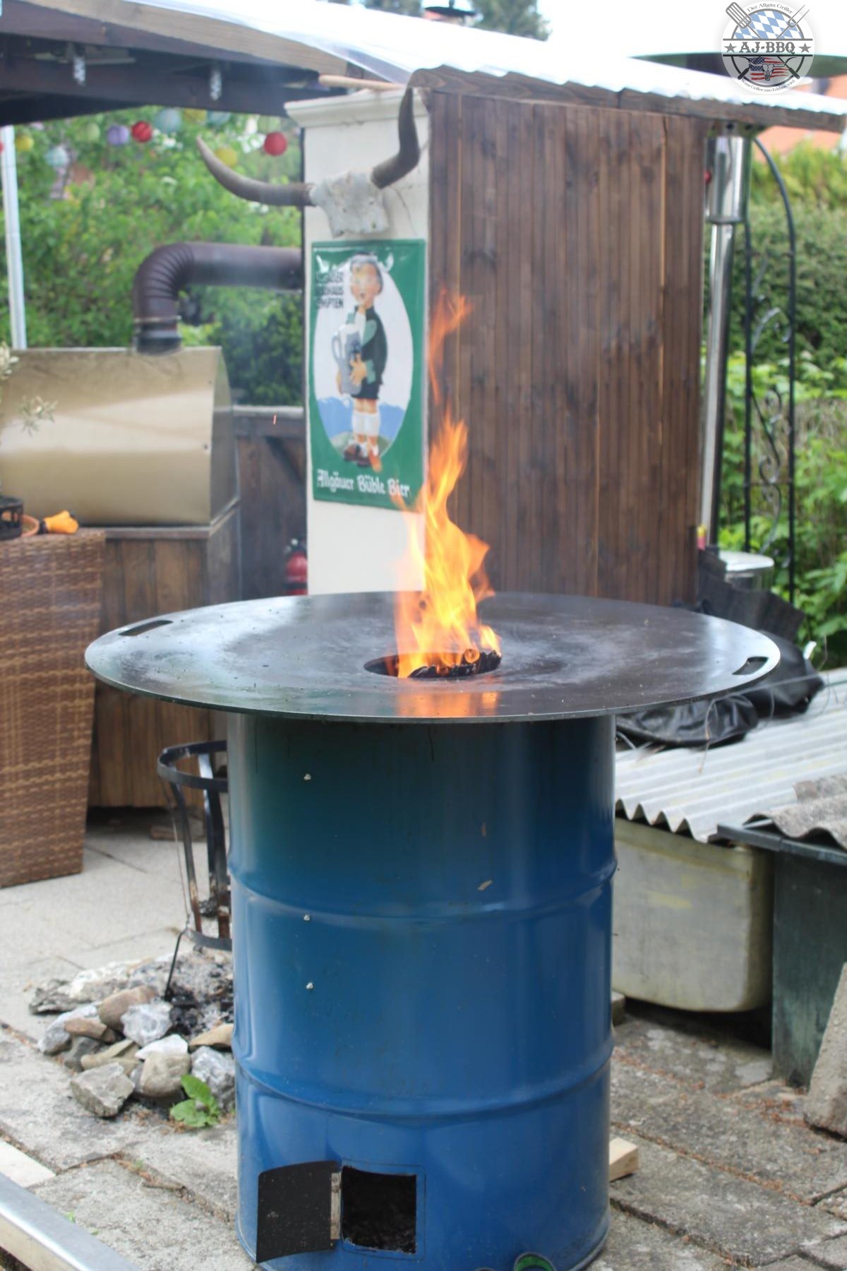 Feuerplatten gibt es mittlerweile in den verschiedensten Ausführungen. Am beliebtesten sind, denke ich, die Platten auf einem leeren Ölfass. Sie sind in der Größe sehr variabel und die einzelnen Hersteller bauen oft schon Feuerkörbe zum einhängen, sodass man selbst wirklich wenig arbeit hat. Man kann natürlich den Korb auch selber bauen. Wenn man allerdings keinen Platz für noch ein Grillgerät hat, bieten einige Hersteller auch Platten an, welche hervorragend in z.B. den Kugelgrill passen. Auch solche Platten, die auf einem alten Weinfass liegen sind ein absoluter Blickfang.