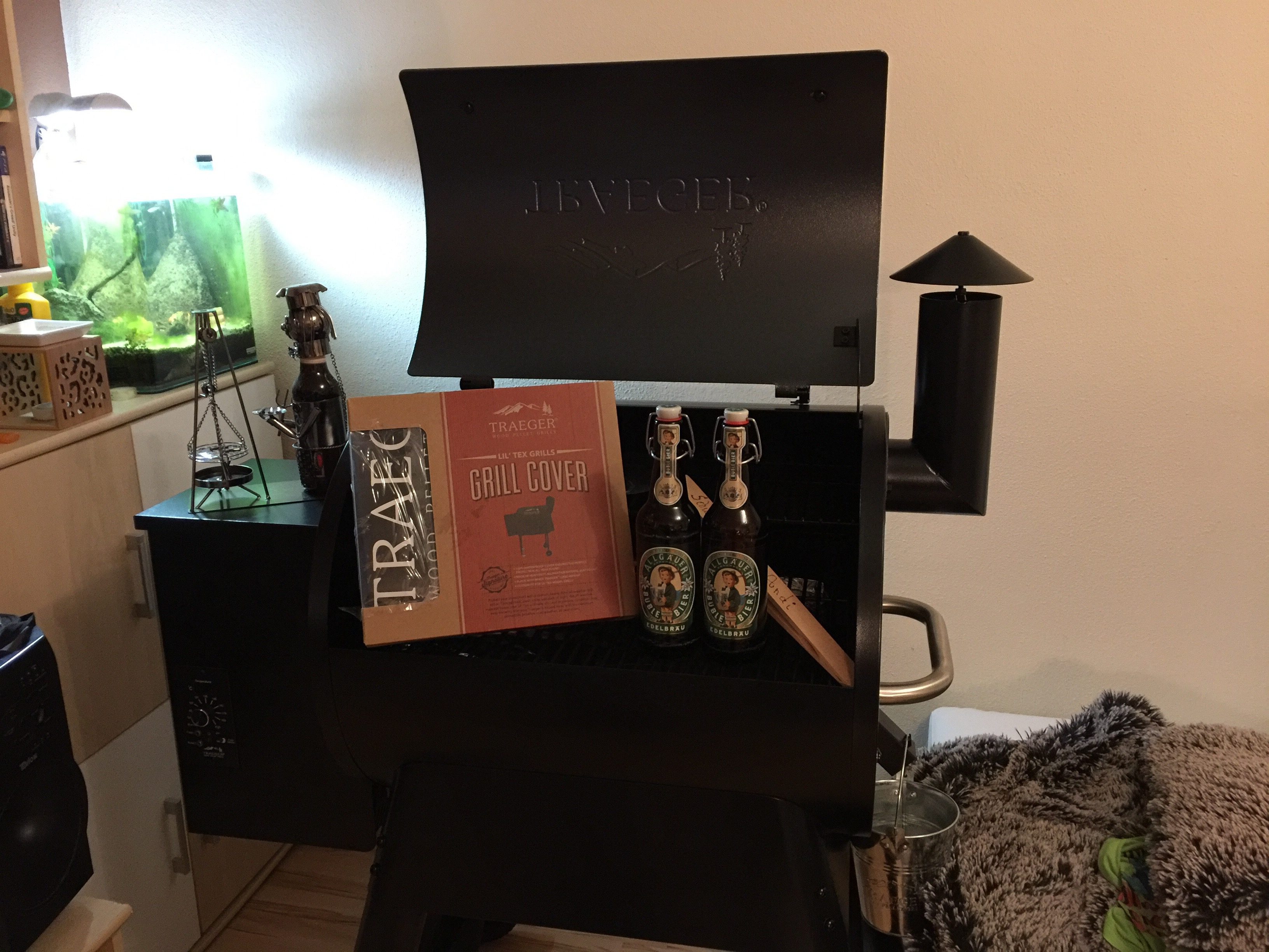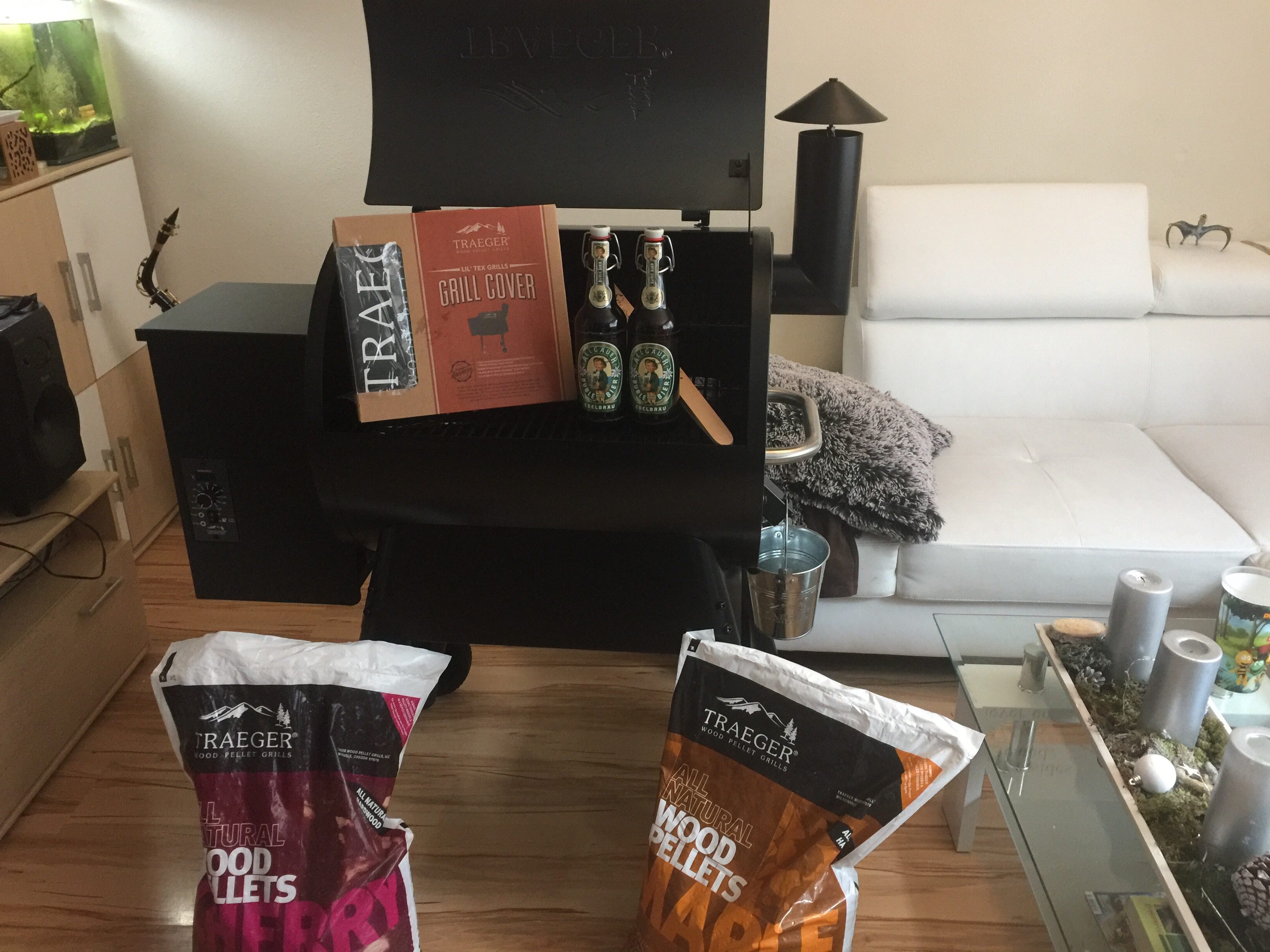Der Traeger ist mein momentan liebstes Grillgerät. Er hat eine Grillfläche von 56 cm x 48 cm und reicht somit auf jeden Fall aus, um eine größere Gesellschaft zu verköstigen. Pelletgrills sind absolute Allrounder mit denen man wirklich alles machen kann. Man kann grillen, räuchern, backen, braten, schmoren und natürlich smoken, was ja für amerikanisches BBQ wichtig ist. Viele bezeichnen ihn als Altherrengrill, weil man mit ihm eine Temperatur einstellen kann und er sie selbst hält, aber gerade diese Funktion ist super. Ich liebe Longjobs, aber mit dieser Funktion macht er einem das Grillen wirklich super einfach.