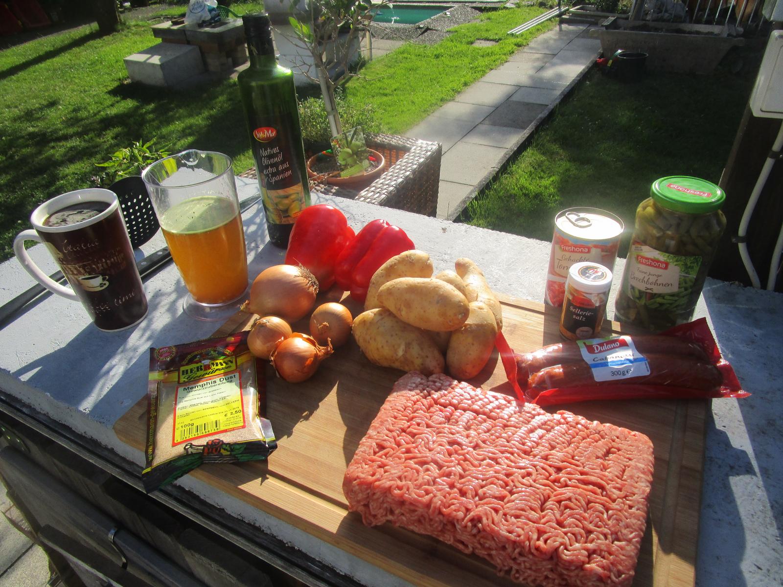 - Nun das ganze Gemüse in grobe Würfel und die Cabanossi klein schneiden.