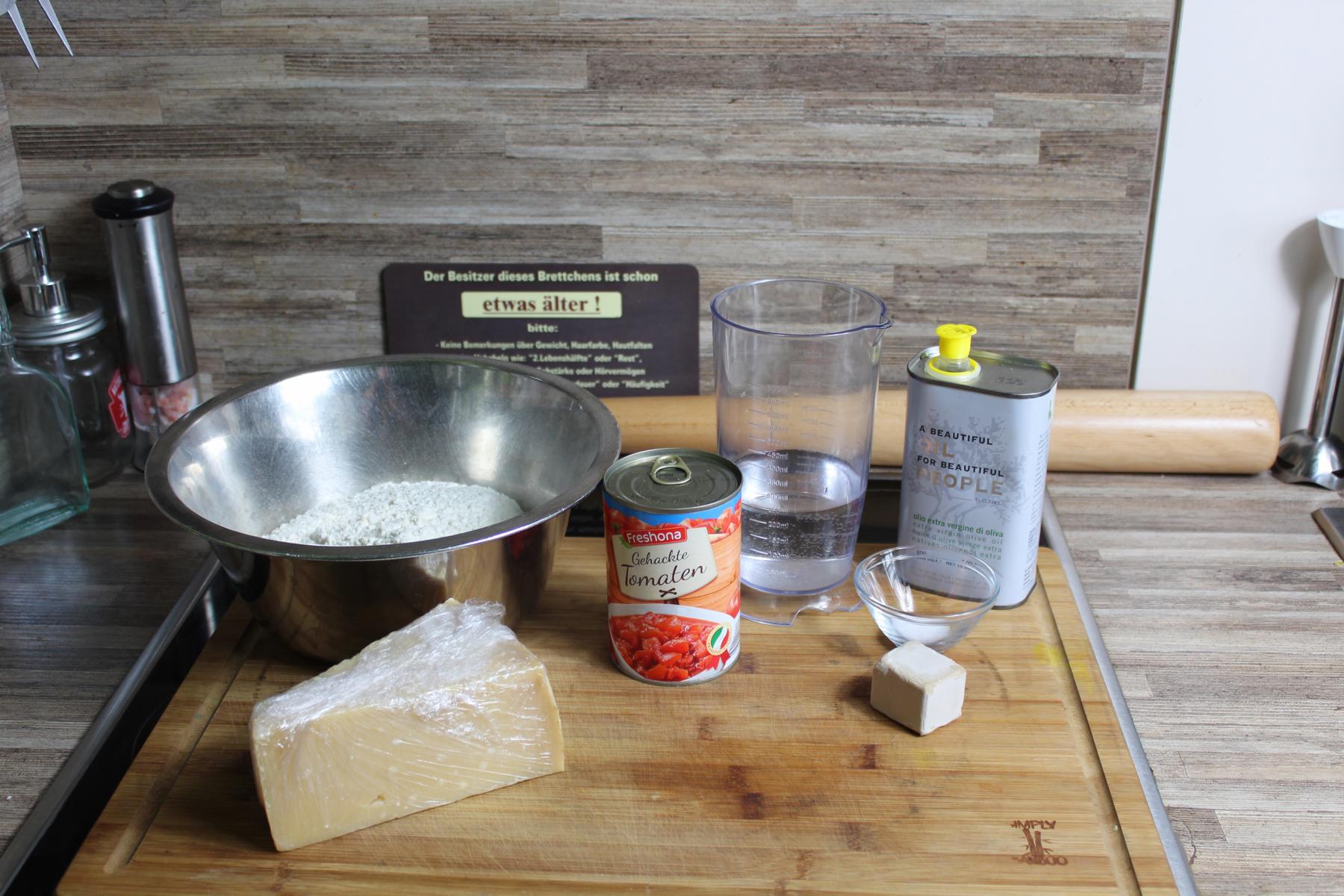 - Zuerst wird der Pizzateig gemacht. Dafür zerbrösle ich die Hefe und gebe sie in lauwarmes Wasser. Dort löse ich sie unter rühren auf. Jetzt werden das Mehl, das Salz, Öl und das Hefewasser in einer Schüssel verknetet. Hierbei sollte man sich schon ungefähr 10 Minuten Zeit lassen, damit der Teig später schön fluffig wird. Nun wird der Teig abgedeckt und an einem warmen Ort für etwa 3 Stunden gehen gelassen.