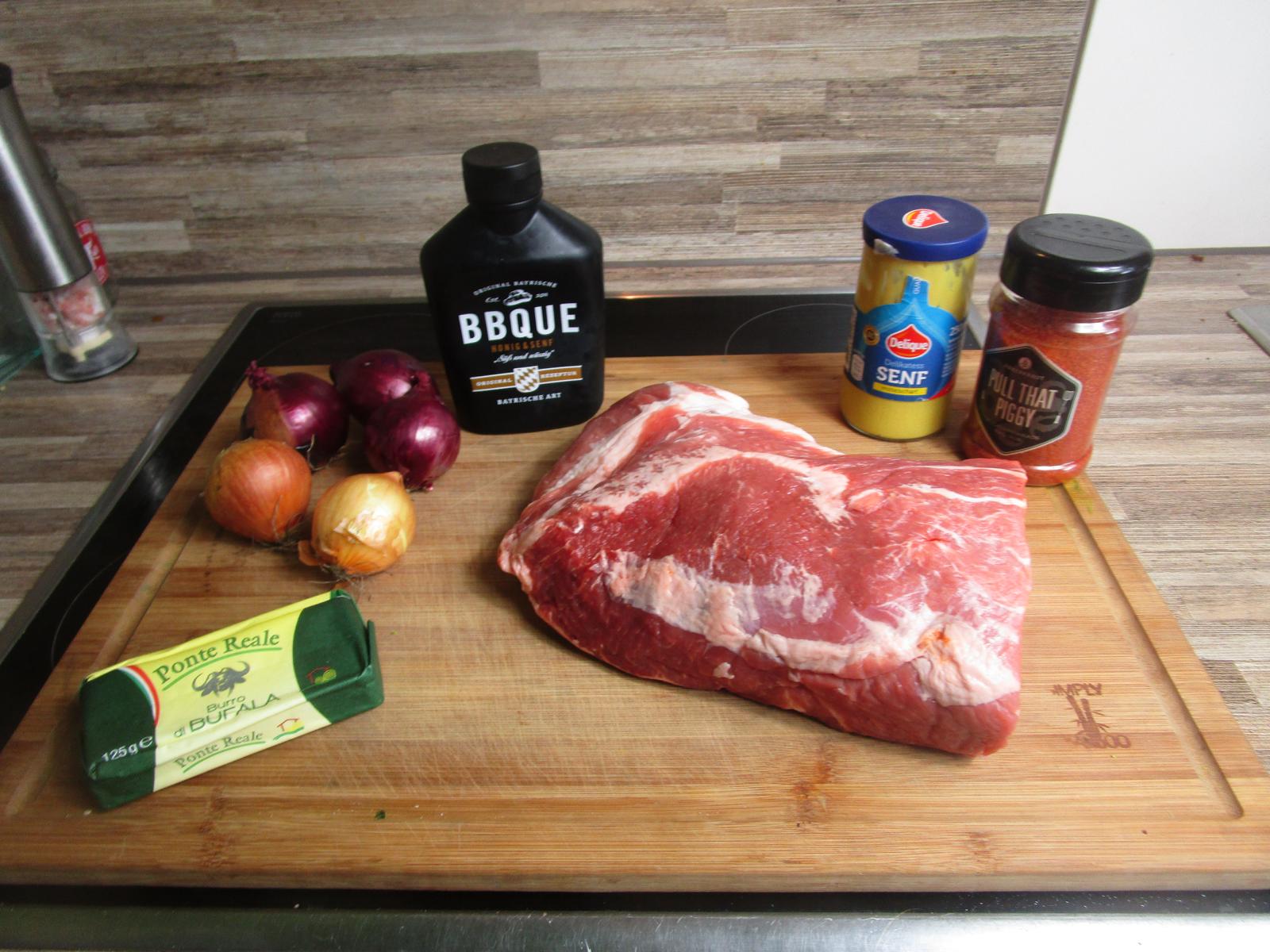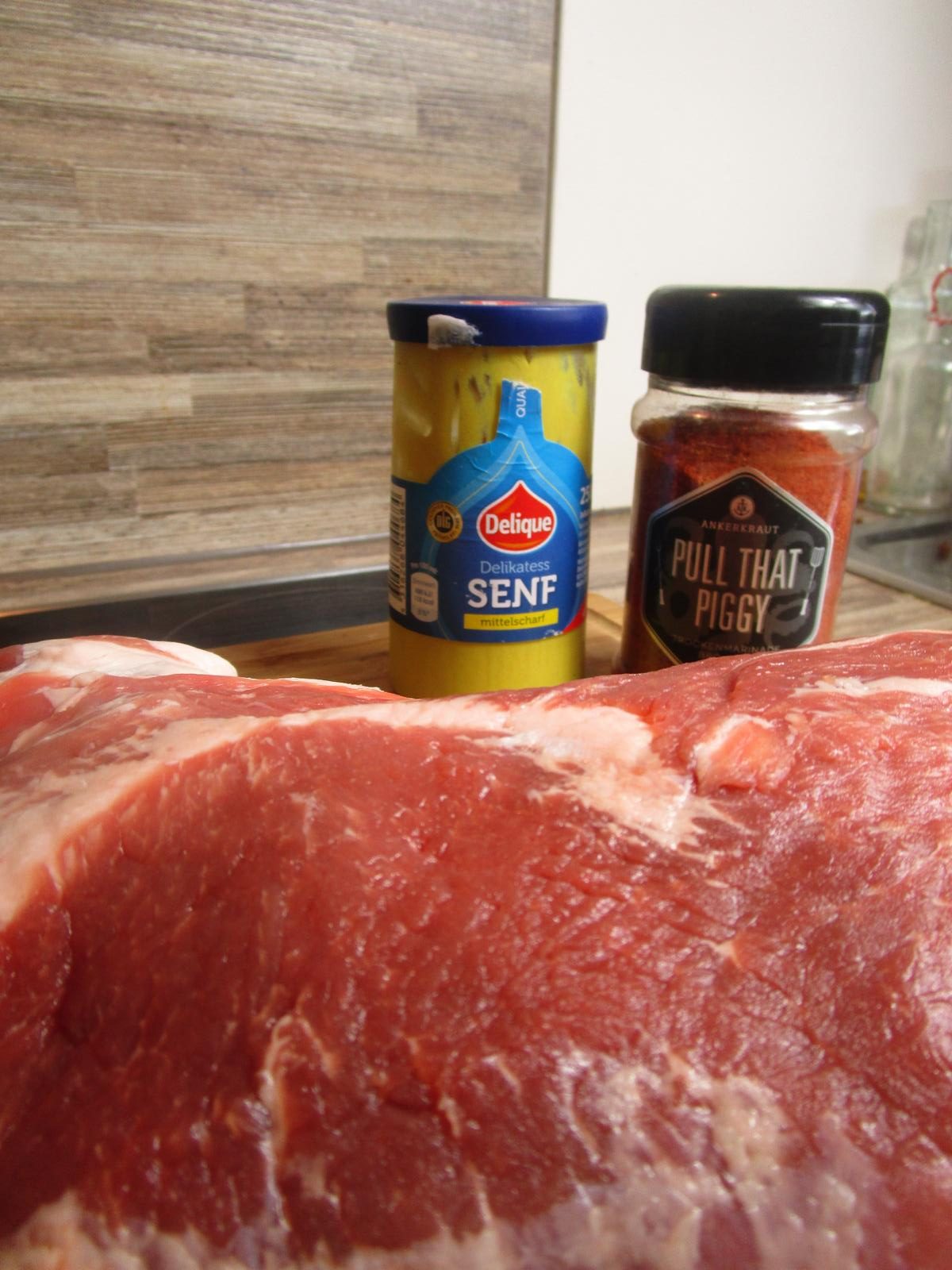 - BBQ Rub (Gewürzmischung) nach Wahl hier Pull that Piggy von Ankerkraut