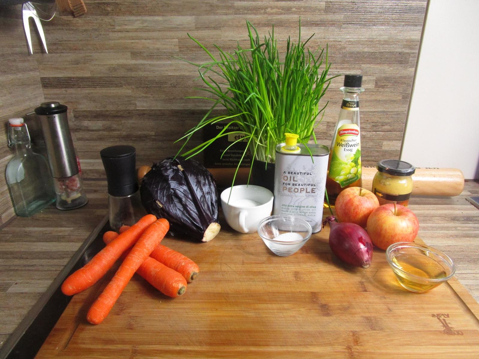 - Während der Zeit im Dutch Oven kann man natürlich hervorragend noch Beilagen und Salate herstellen. Ich habe zu diesem Rezept einen roten Coleslaw gemacht.