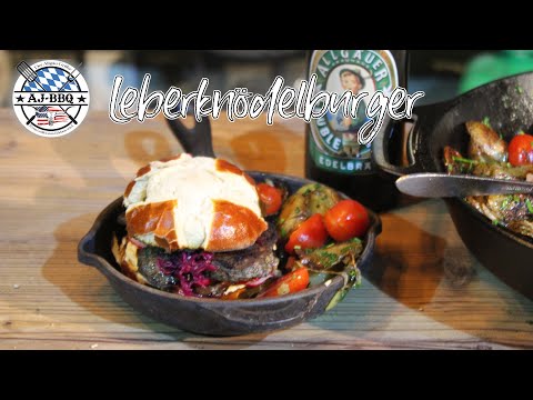 Leberknödelburger mit gegrilltem Kartoffelsalat