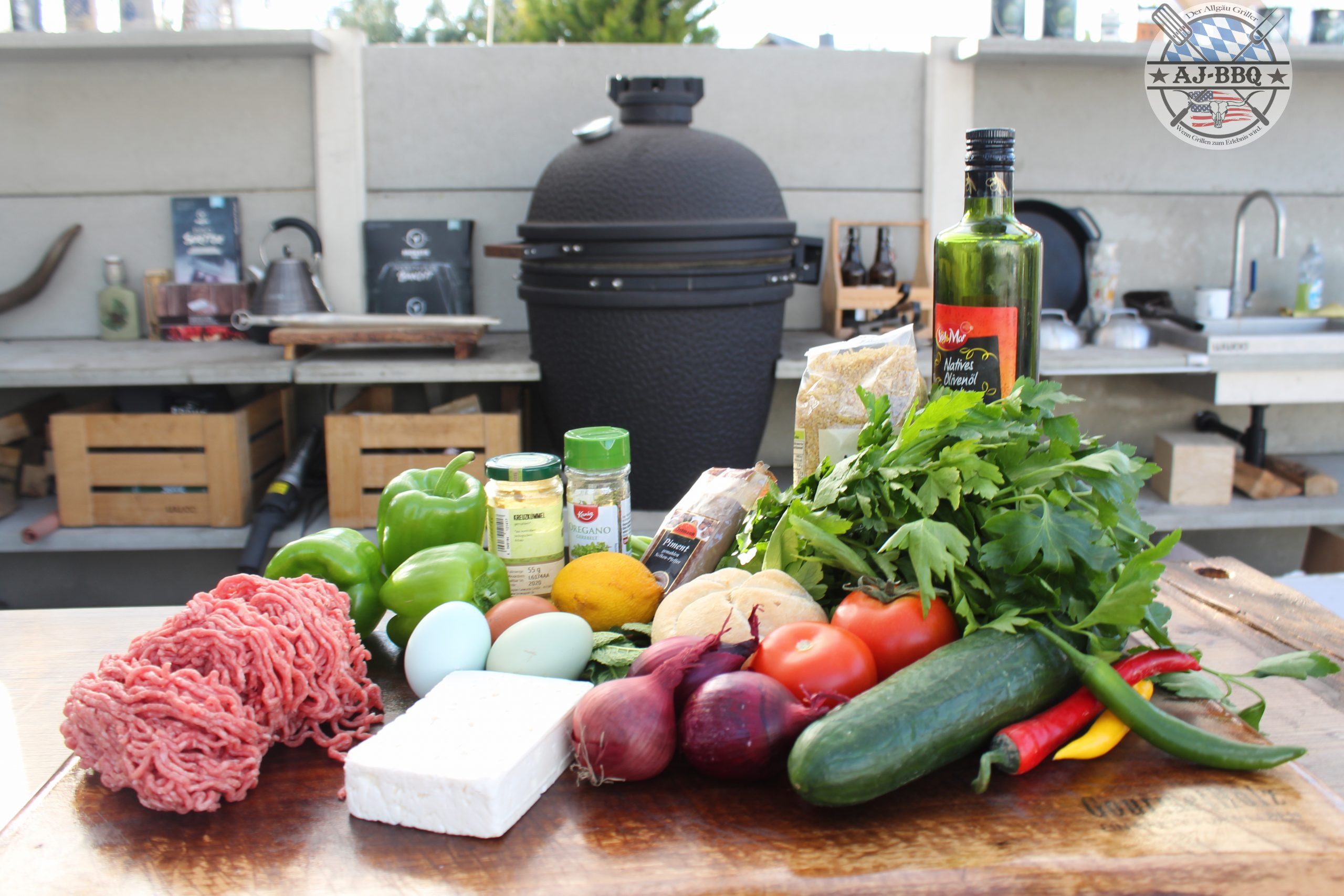 - Zuerst stelle ich die Hachfleischmasse her. Hierfür weiche ich die altbackenen Semmeln in Wasser ein, drücke sie aus und rupfe die durchweichten Semmeln ganz klein in eine Schüssel. Dann kommt das Hackfleisch und die 4 Eier hinzu und dann wird schon mal alles gleichmäßig vermengt. Nun kommen die Hälfte der Petersilie, Piment, Kreuzkümmel, Salz und Pfeffer, Oregano und die Zwiebeln noch in die Hackmasse und schon ist diese fertig. Sollte sie zu feucht geraten, dass kann z.B. wegen zu feuchter Semmeln oder zu großer Eier passieren, kann sie mit Semmelbrösel noch verfestigt werden, bis sie eine perfekte, homogene Konsistenz hat.