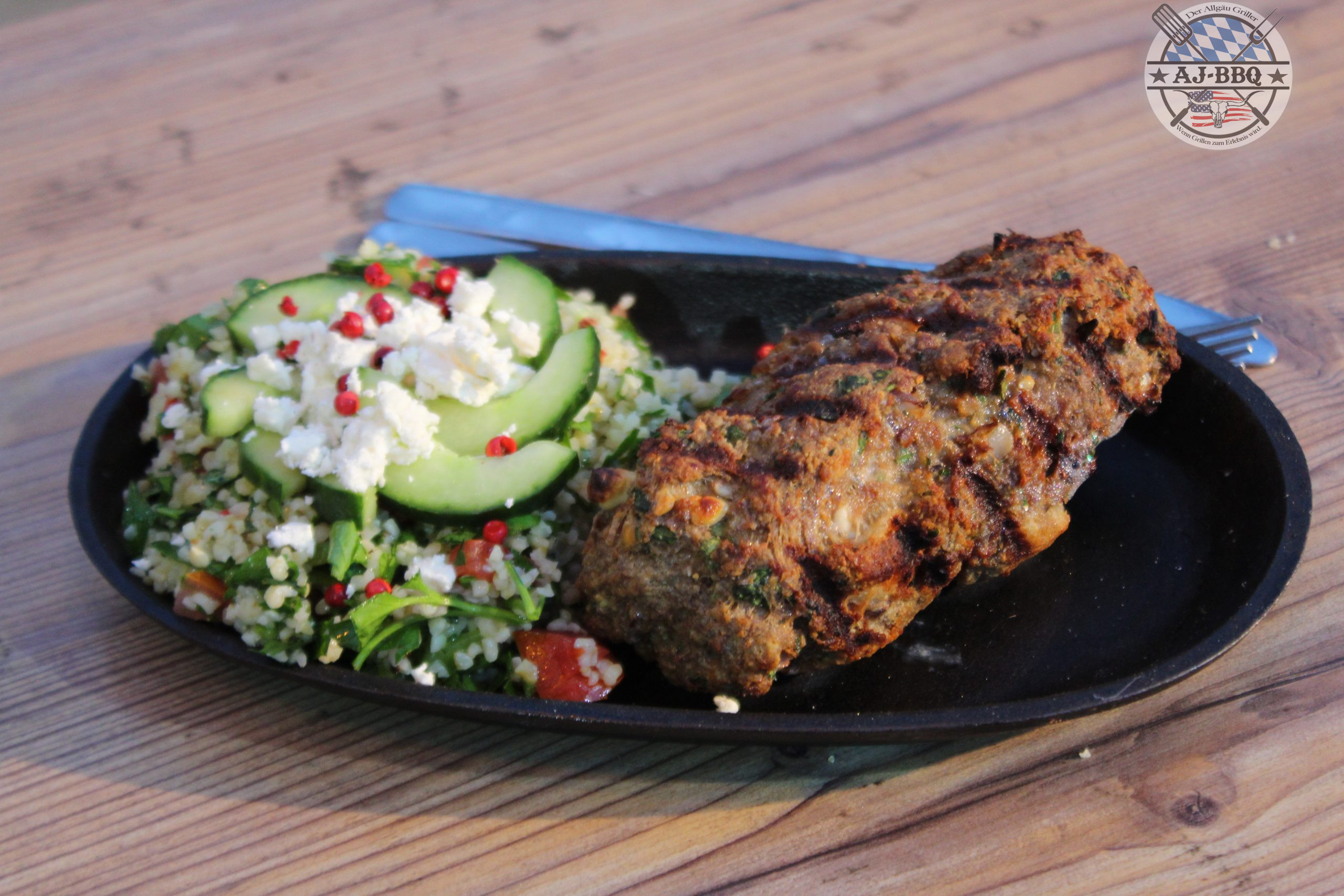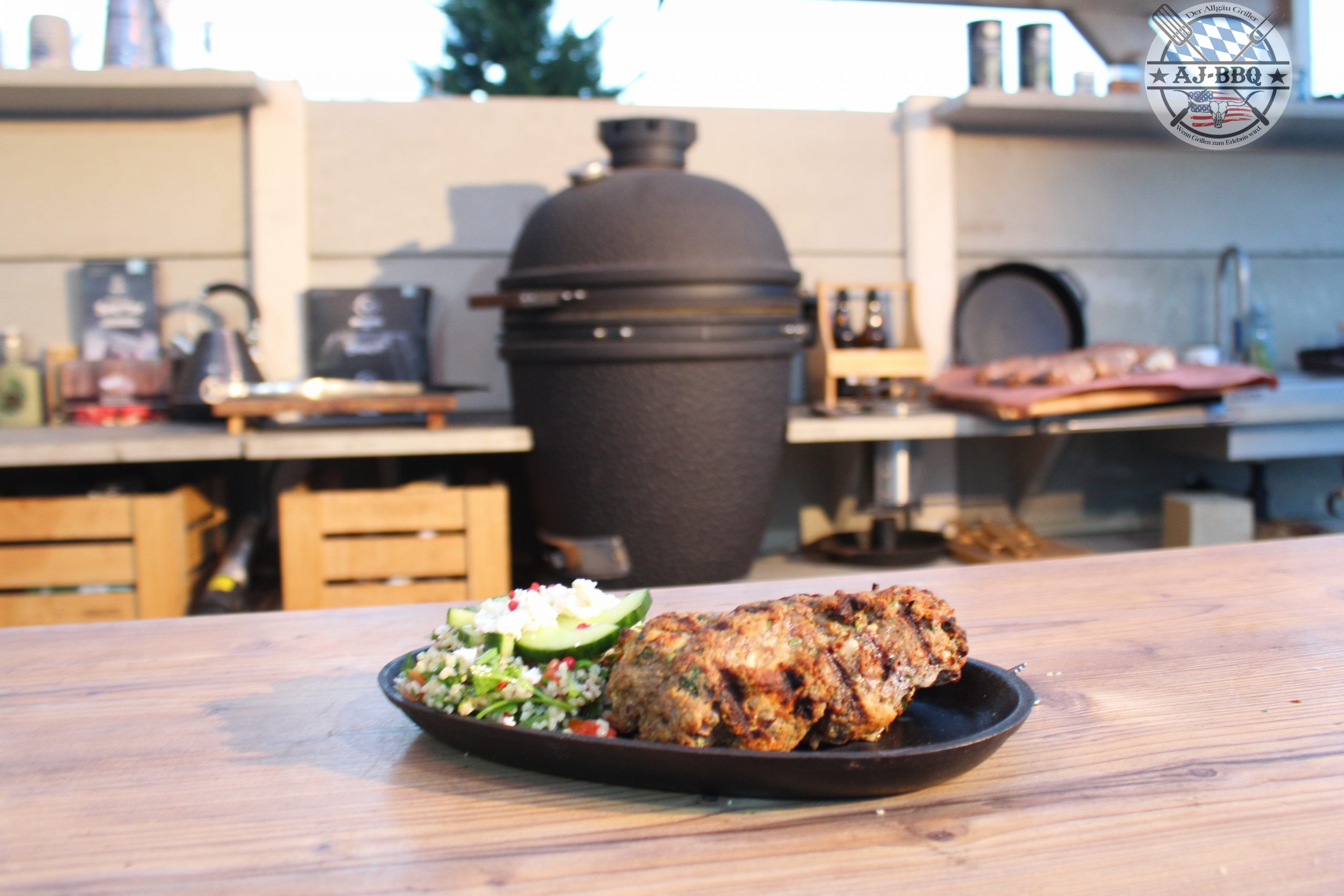 - Sind die Biftekis dann fertig gegrillt kann auch schon angerichtet werden.