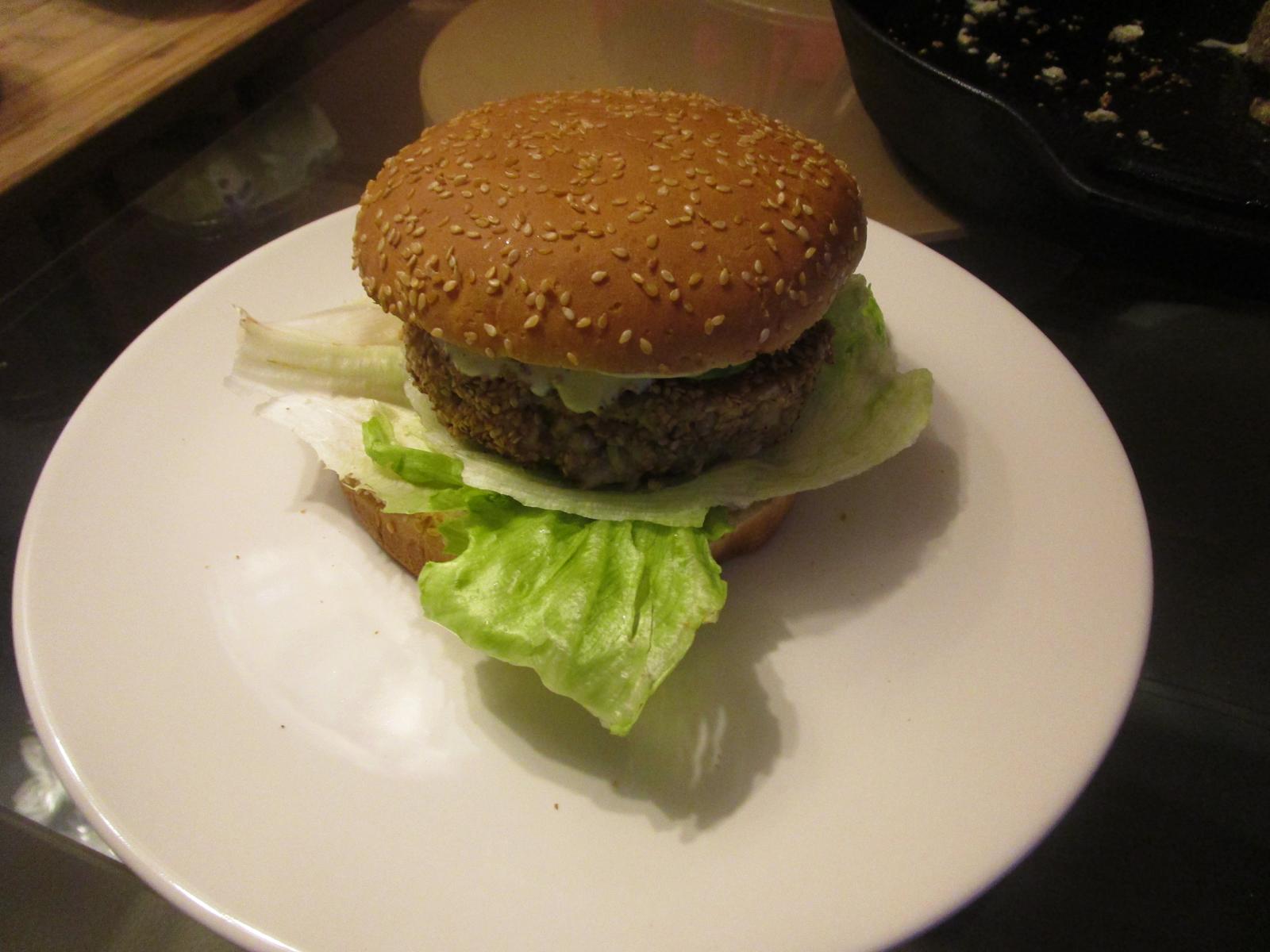 - Wenn alles vorbereitet ist, gebe ich etwas Olivenöl in die Pfanne im Grill und gare die Patties nun 5 Minuten von jeder Seite. Mehr nicht, sonst wird alles ziemlich trocken. Kurz vor dem Ende der zweiten 5 Minuten, röste ich schnell noch die Brötchen neben der Pfanne an und schon kann zusammengebaut werden.