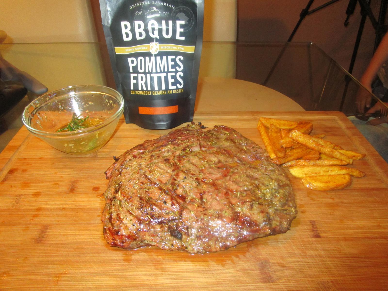 - Als Beilage gibt es selbstgemachte Pommes mit dem BBQUE Pommesgewürz.