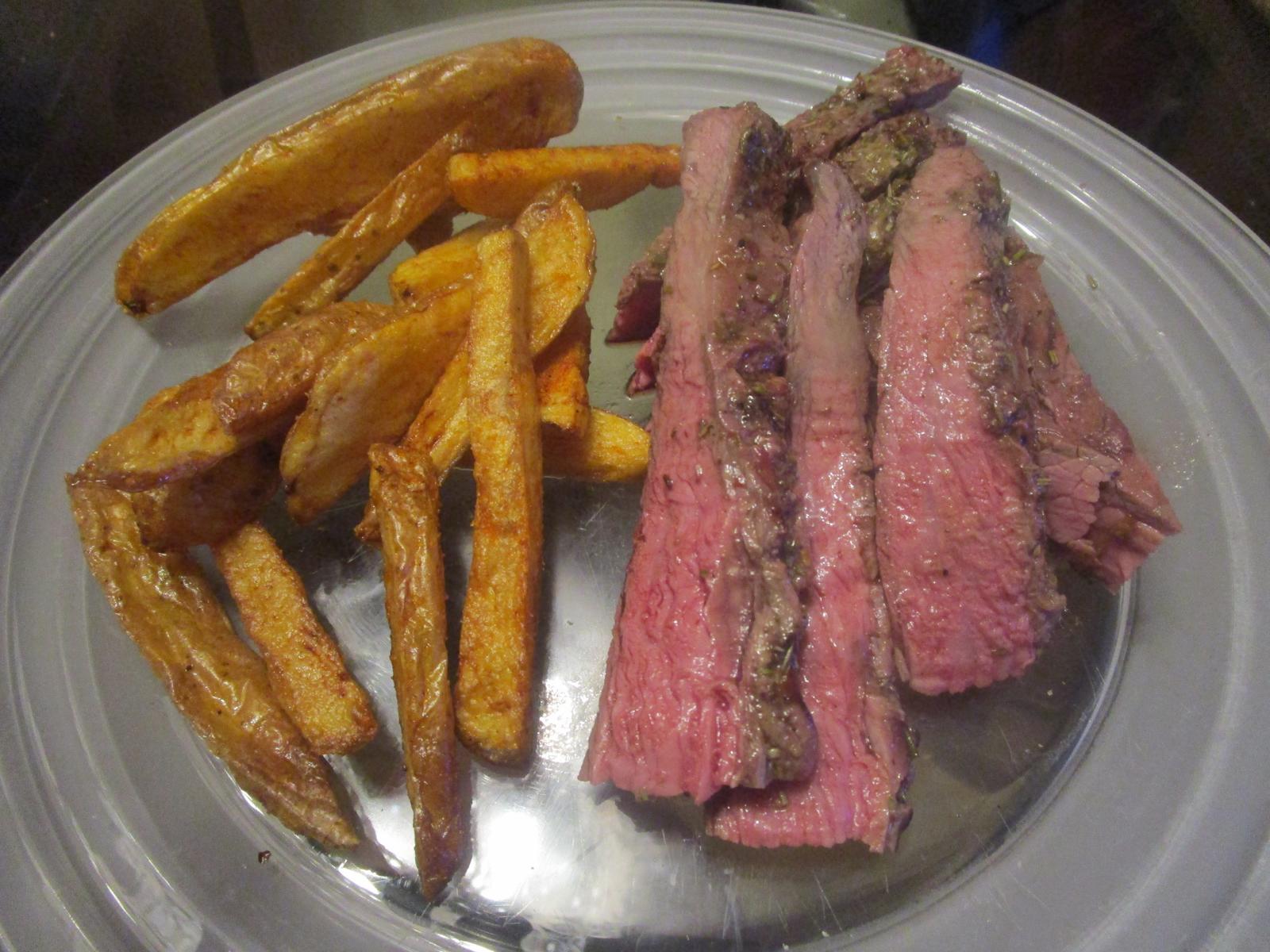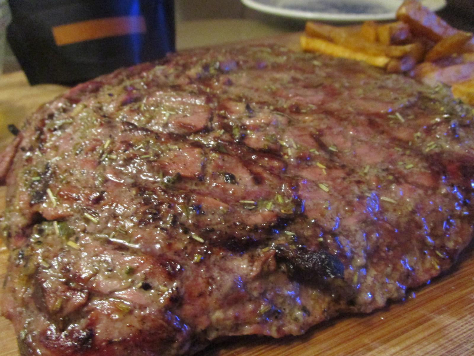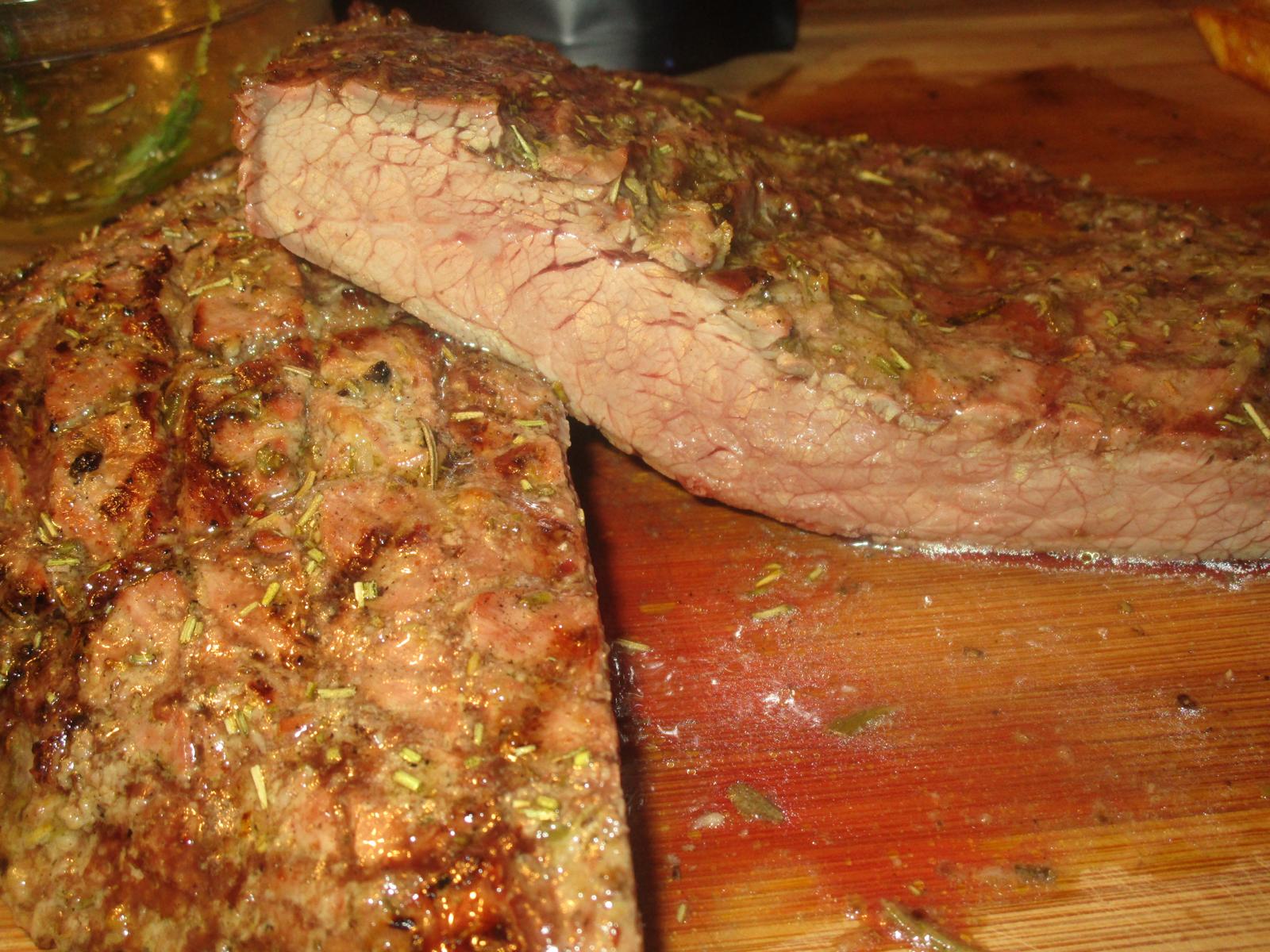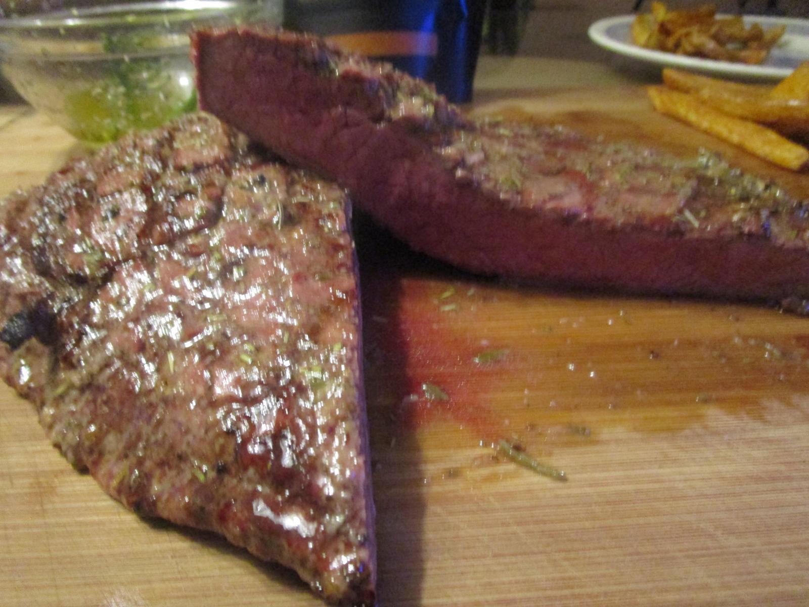 - Wenn dann Grillrost und Gußrost vorgeheizt sind, wird das Flanksteak etwa 2-3 Minuten von beiden Seiten auf dem Gußrost angeröstet und wandert dann in den indirekten Bereich.