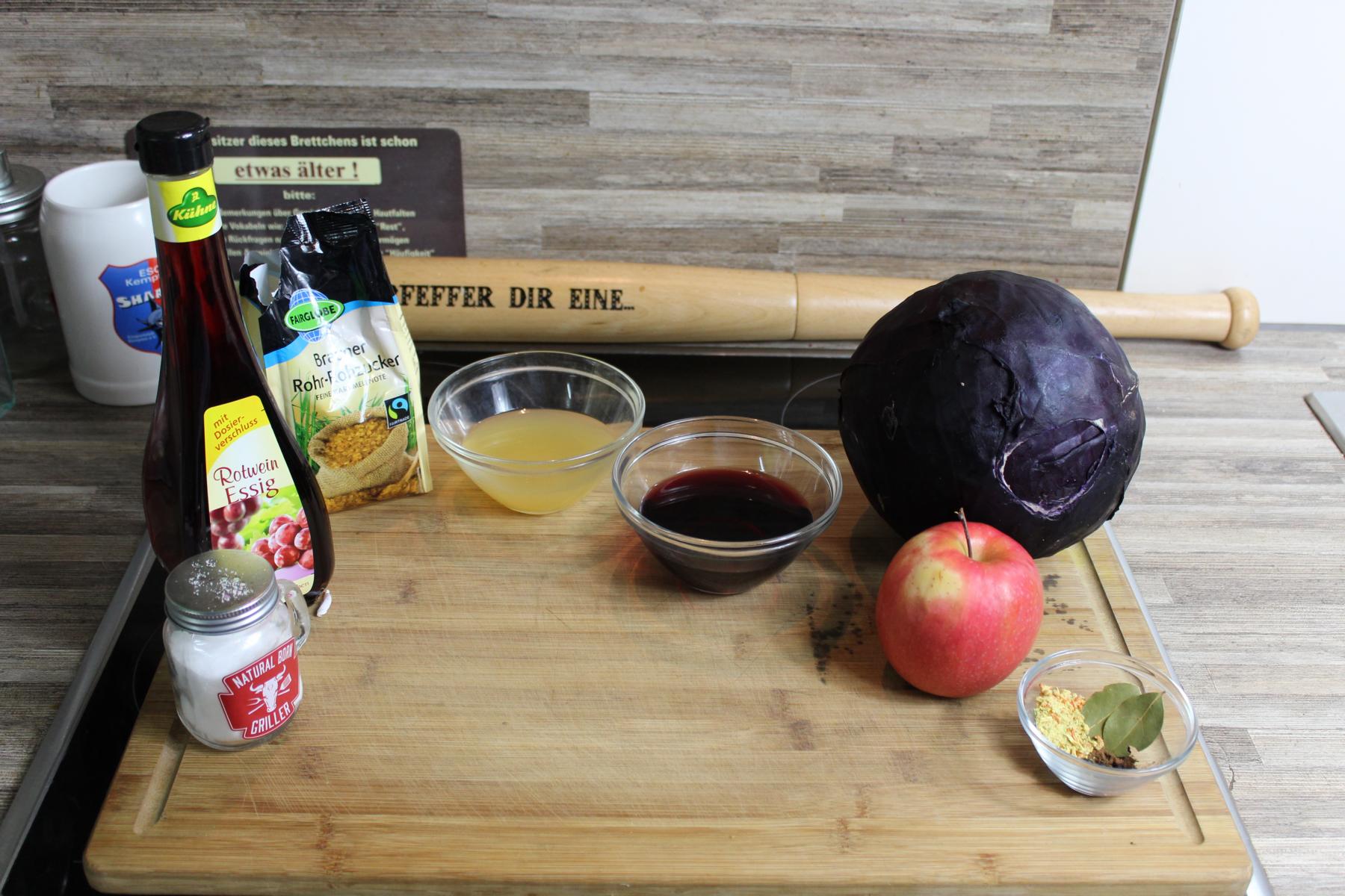 - 1 kg (etwa 1/2 Kohlkopf) frischer Rotkohl